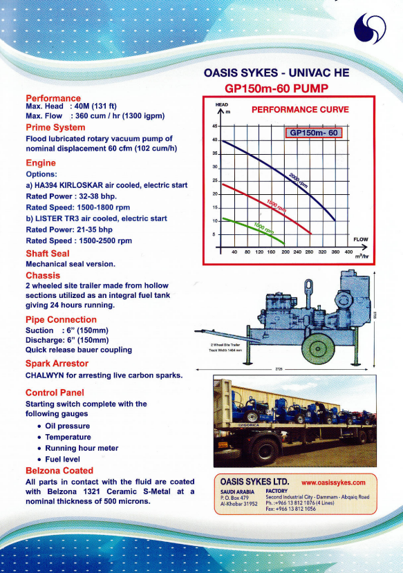 يستخدم جهاز GP150M-60 على نطاق واسع في مواقع البناء لأغراض تصريف المياه، ومن قبل شركات النفط والبلديات والمرافق، وكذلك للتطبيقات البحرية