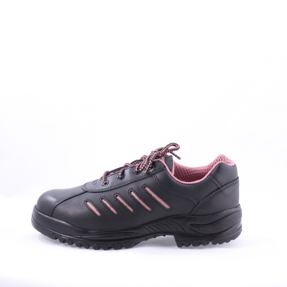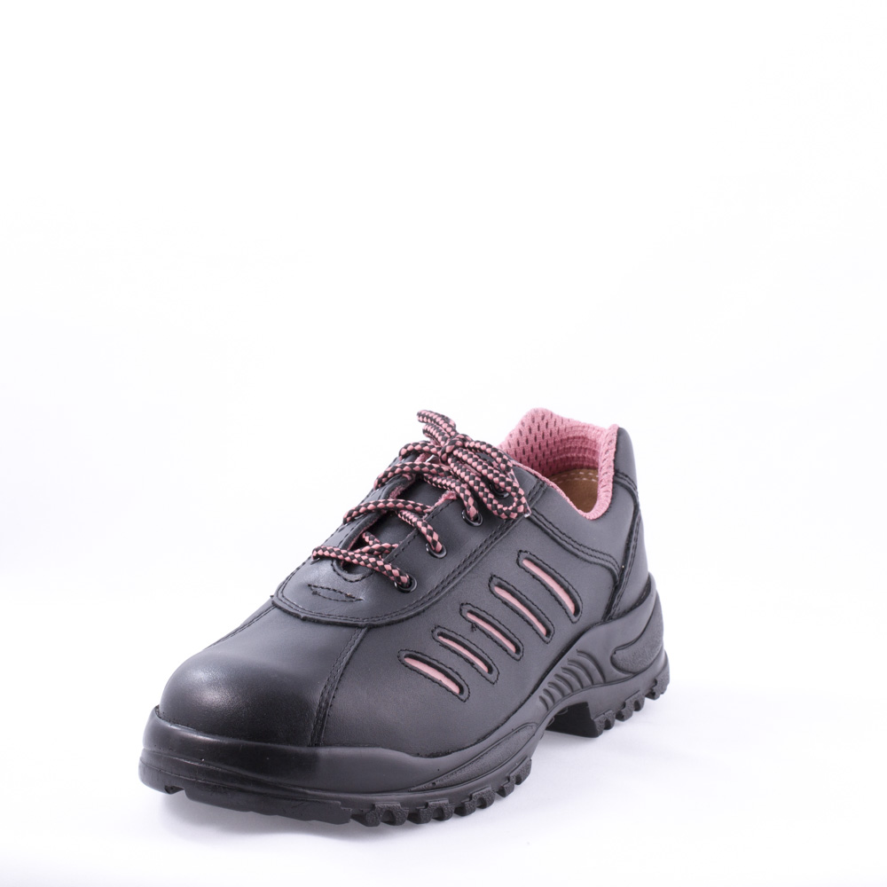 Black and Pink Safety Shoe with Lace-Up Design and Four (4) Eyelets (for Women).