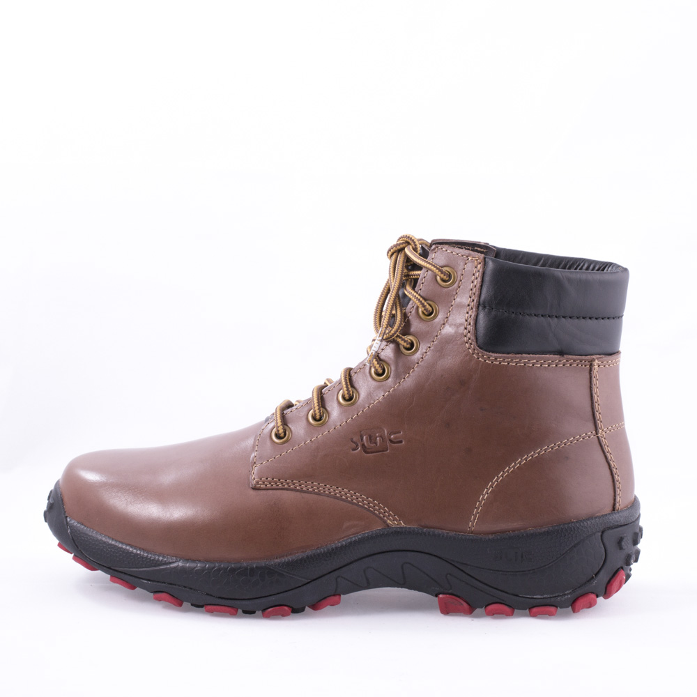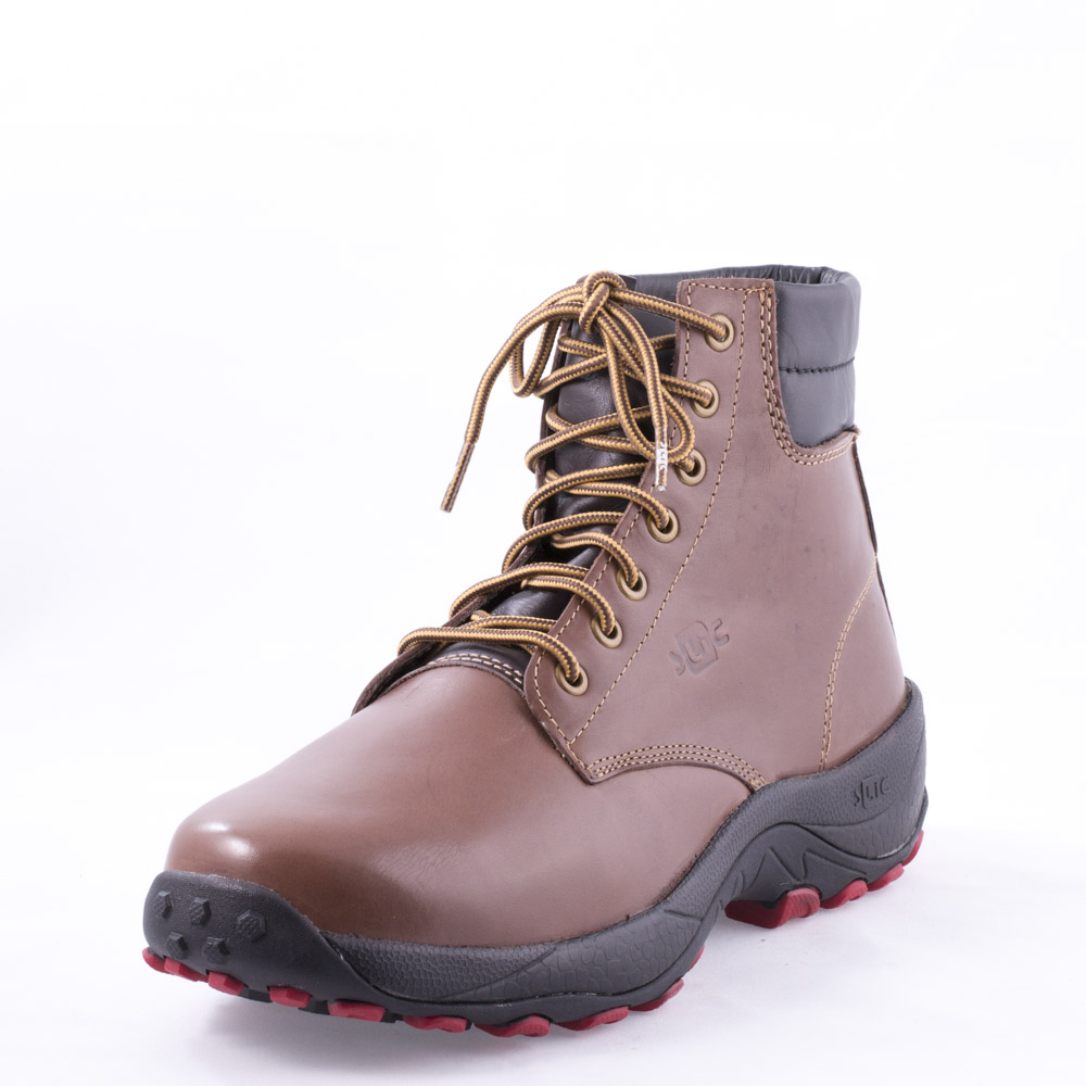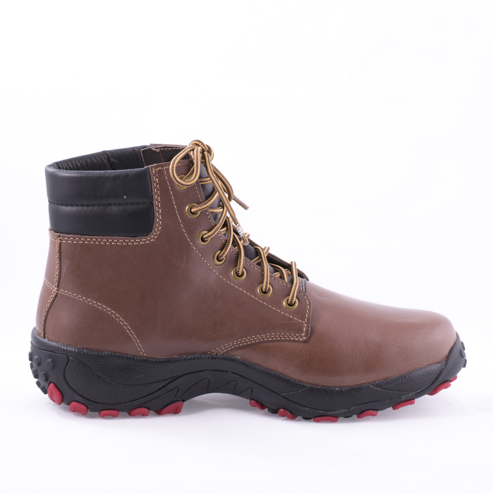 حذاء بني برباط طويل مرتفع مع 7 فتحات مستديره والياقة مبطنة واسعة.