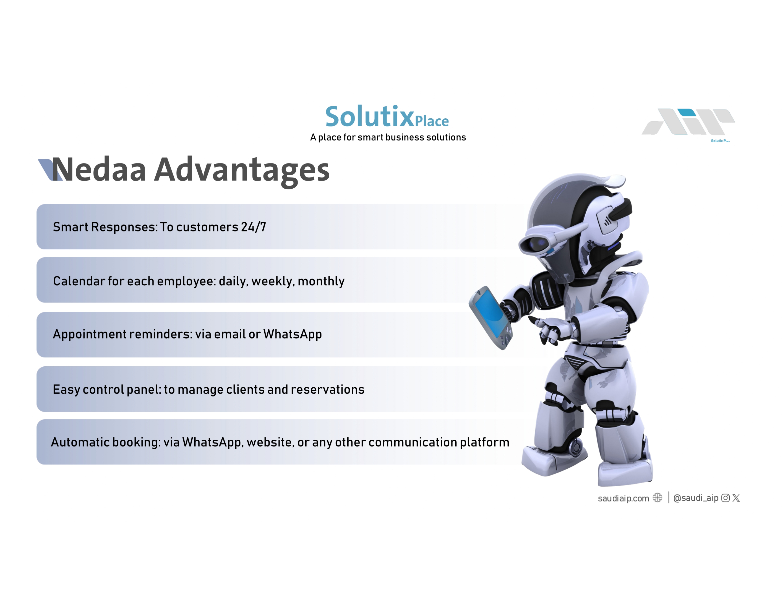 Nidaa is an integrated customer and appointment management system that relies on artificial intelligence to provide instant responses, automated bookings, appointment reminders, and an easy-to-use dashboard to track everything in one place, without the need for complex settings or external connections.